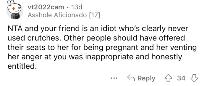What's your take on this situation? Do you think the OP should have given up their seat, or was the pregnant woman out of line for demanding it in the first place?