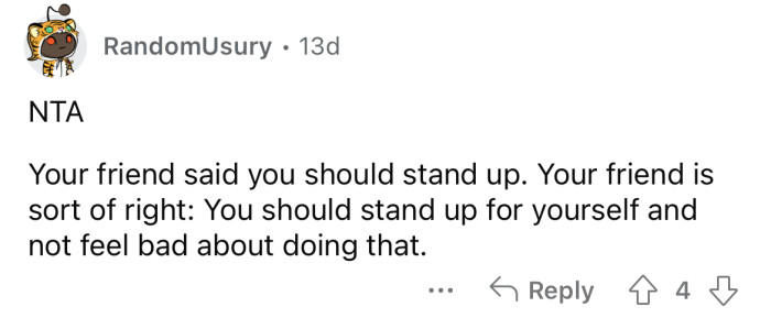 Now the OP is wondering if they were the a**hole here since their friend also said they should have given up the seat.