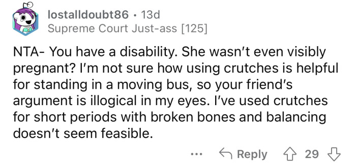 Now the OP is wondering if they are the a**hole since their friend also said they should have given up the seat for the woman. Keep scrolling to see how people reacted.