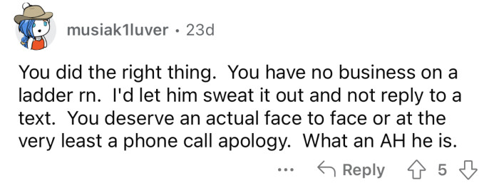 When the Redditor said she didn't feel comfortable climbing a ladder, her stepfather started yelling at her, telling her to just drop everything and go home.