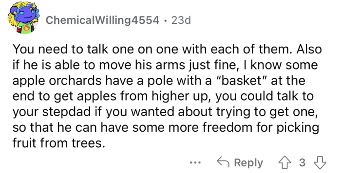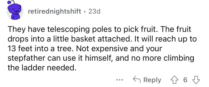 When the OP tried to calm her stepfather down, he continued to yell and told her to leave him alone to do it all. But since her stepfather had already fallen several times, the OP told him he shouldn't be climbing the ladder either. However, he wouldn't listen and began picking plums from the tree.