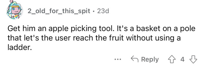 The Redditor says she is not a fan of ladders at the best of times, but especially not at the moment, as she is 16 weeks pregnant with twins. The OP's mom is currently injured, and her stepfather has a disability, so they asked the OP to help them pick some plums and tomatoes from the garden.