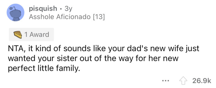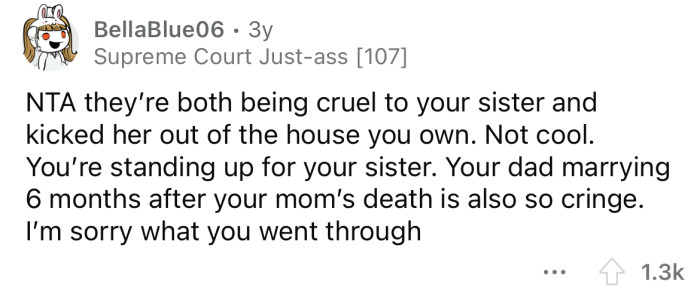 Reddit/Pitiful-HeronSix months after their mother passed away, the OP's father remarried.