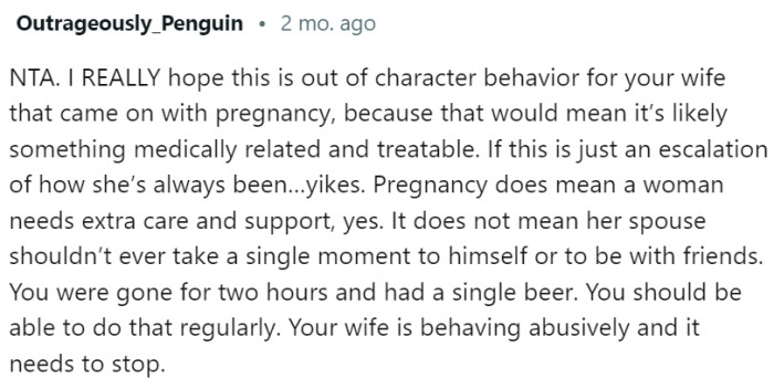 Redditor Asks If He Was Wrong For Having Beer With Friend While His Pregnant Wife Waited At Home