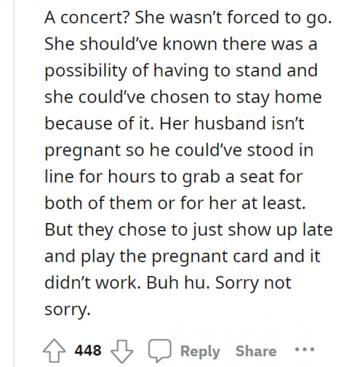 Redditor Gets Called A Heartless A-Hole For Refusing To Give Up Seat In A Concert For A Pregnant Woman