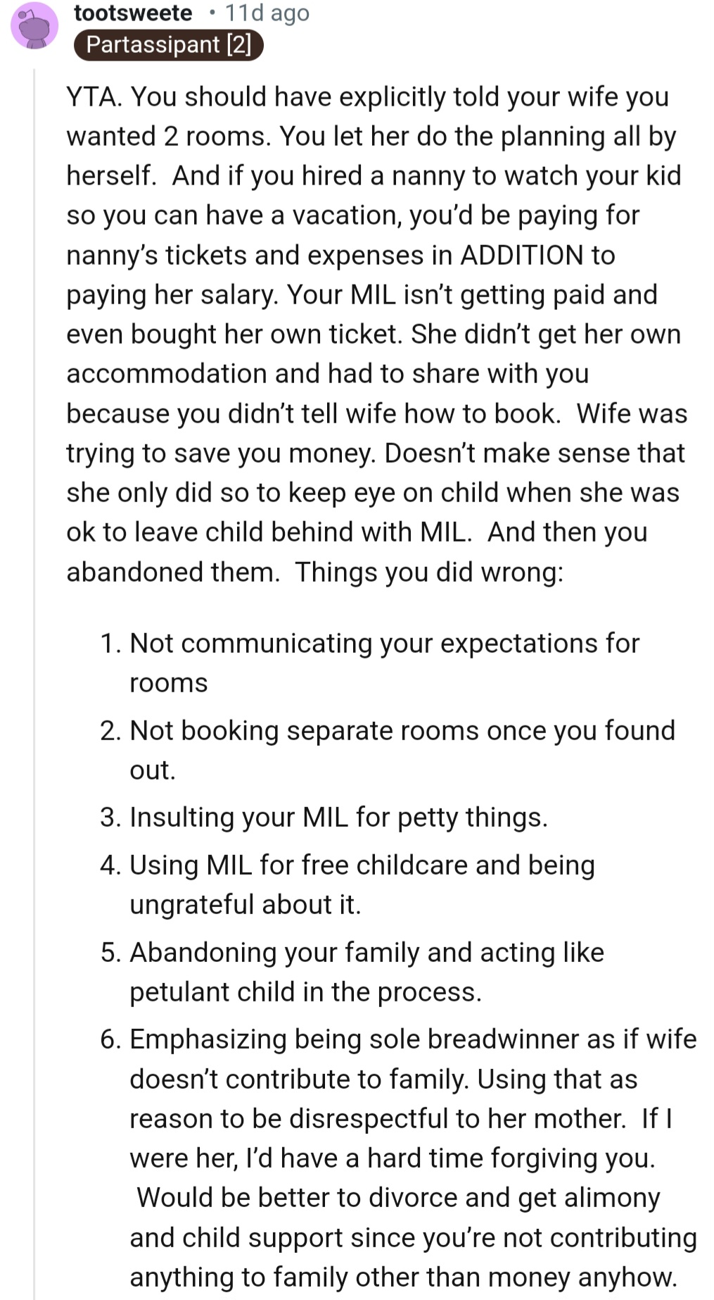 OP was fed up with his mother-in-law’s freeloading and lack of privacy, so he decided to cut his losses and head home early. The trip, paid for with his hard-earned money, was far from the romantic escape he’d anticipated.