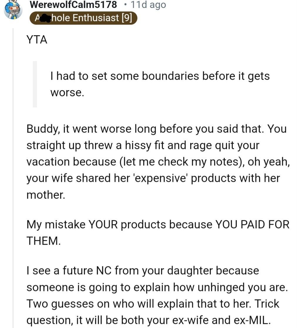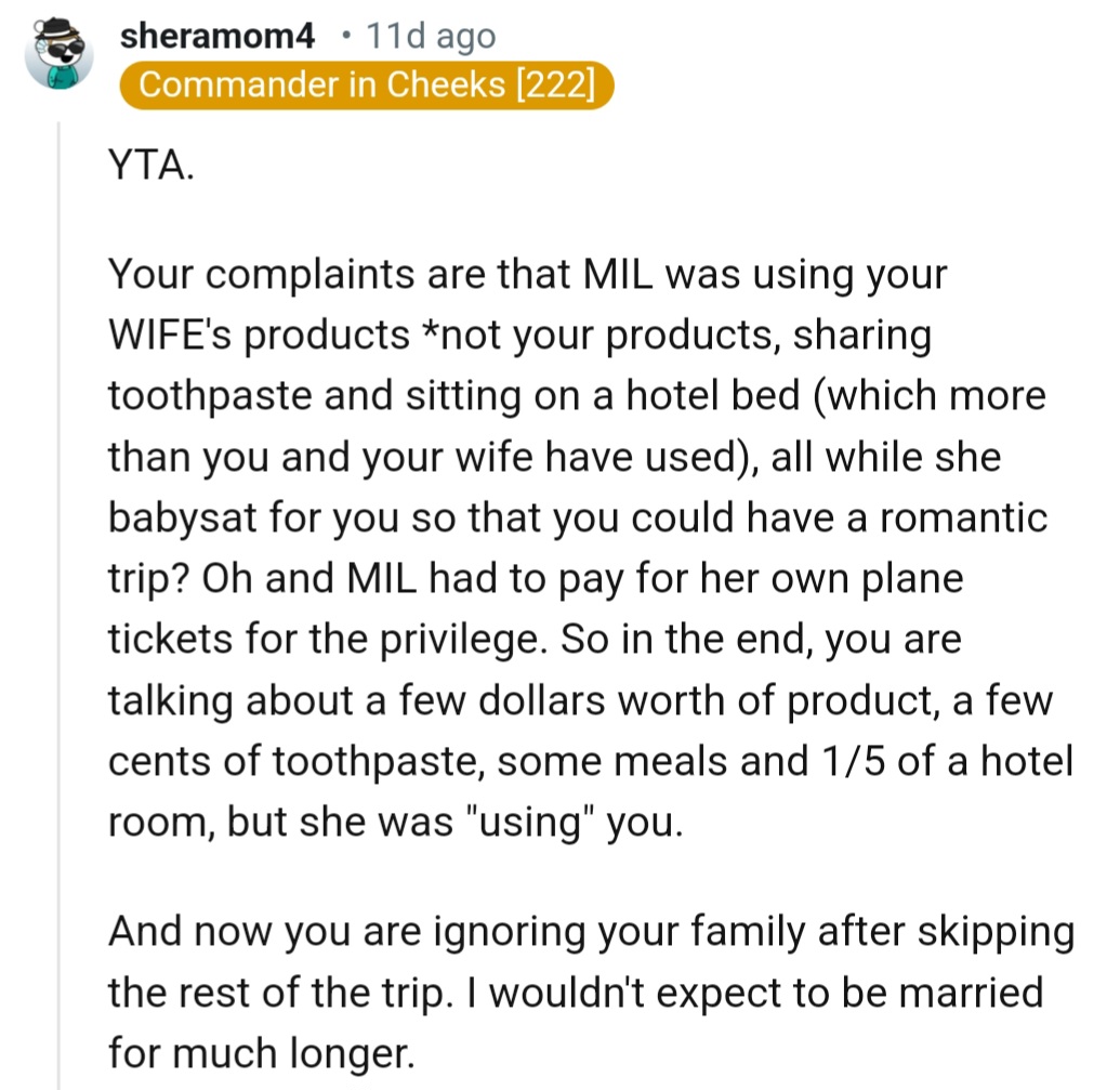 As the days flew by, OP’s mother-in-law’s habits began to gnaw at him. Sharing expensive toiletries? Check.