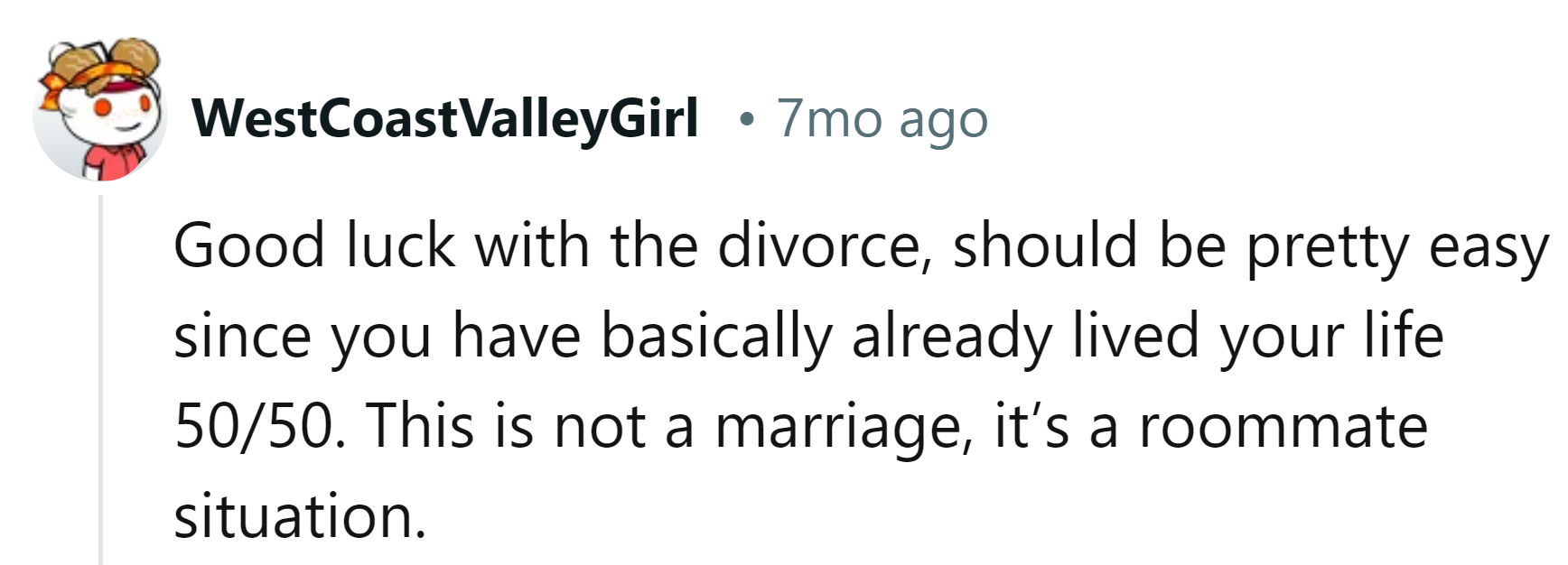 The couple shares all of the family expenses equally, but aside from that, they each have their own bank accounts. The Redditor's wife recently started working a part-time job, but the pay isn't great.