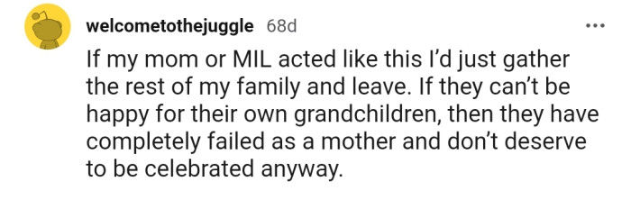 "If my mom or MIL acted like this, I’d just gather the rest of my family and leave"