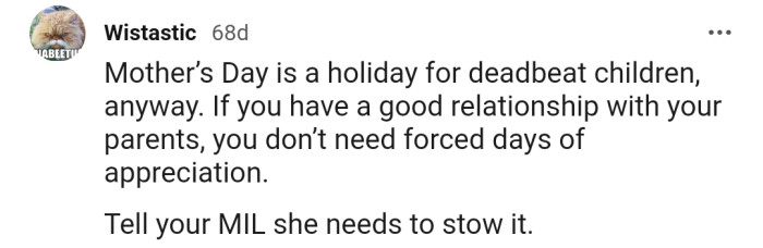 Mothers also look forward to this day, and many hold it in high esteem. We found one Redditor whose mother-in-law (MIL) seems to be one such person.