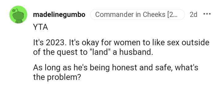 "It's 2023. It's okay for women to like sex outside of the quest to 'land' a husband."