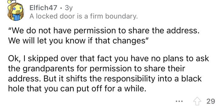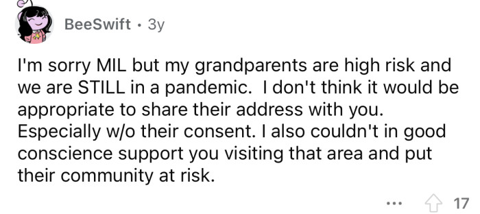 The OP doesn't want to give her MIL the address, so she turned to the Reddit community for advice on how to respond.