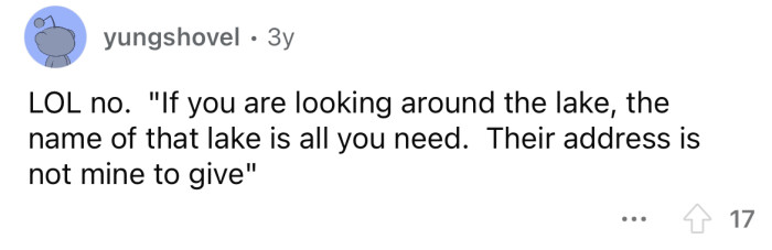 Recently, OP's MIL texted her asking for her grandparents' address because she's looking at vacation rentals near the lake.