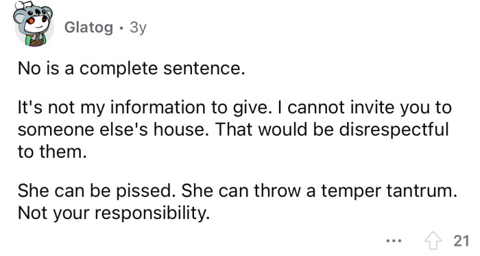 So, the OP asked the Reddit community for advice on how to respond. Keep scrolling to see how people reacted.