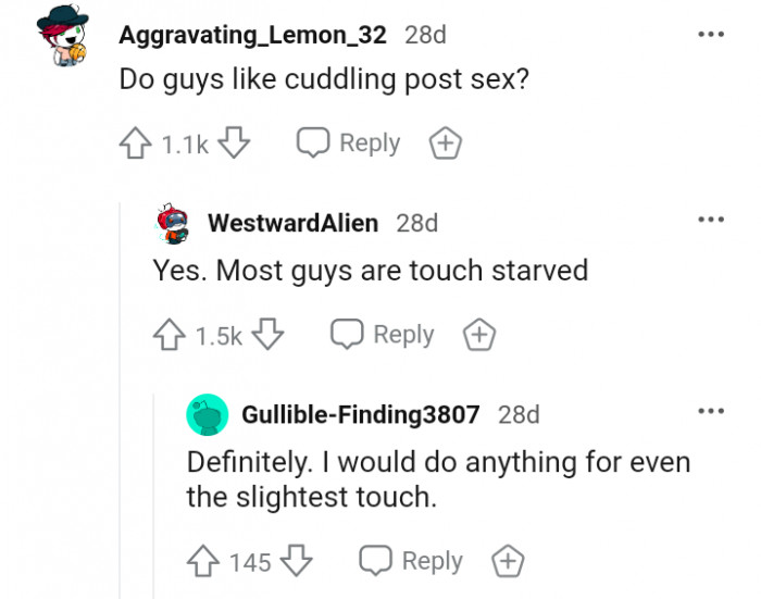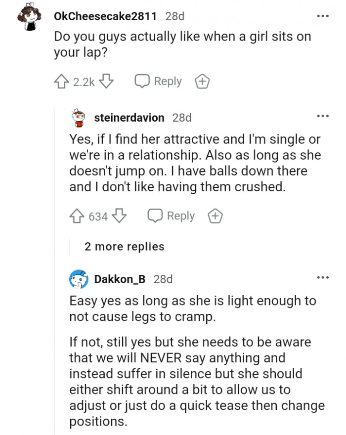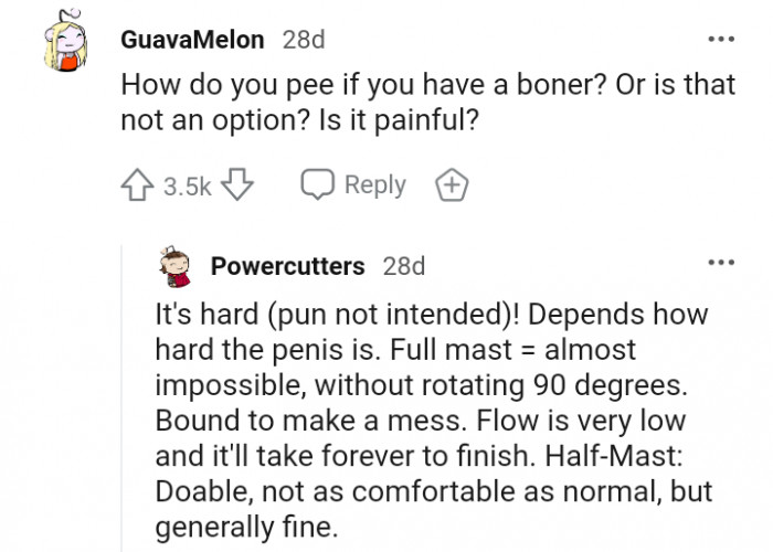 You can already guess that the comments section was flooded with very interesting questions. And fortunately, several male Redditors were willing to answer those burning questions.