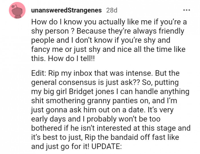 They asked a question on Reddit that went like this, "Women of Reddit, what question about men do you wish to be answered?"