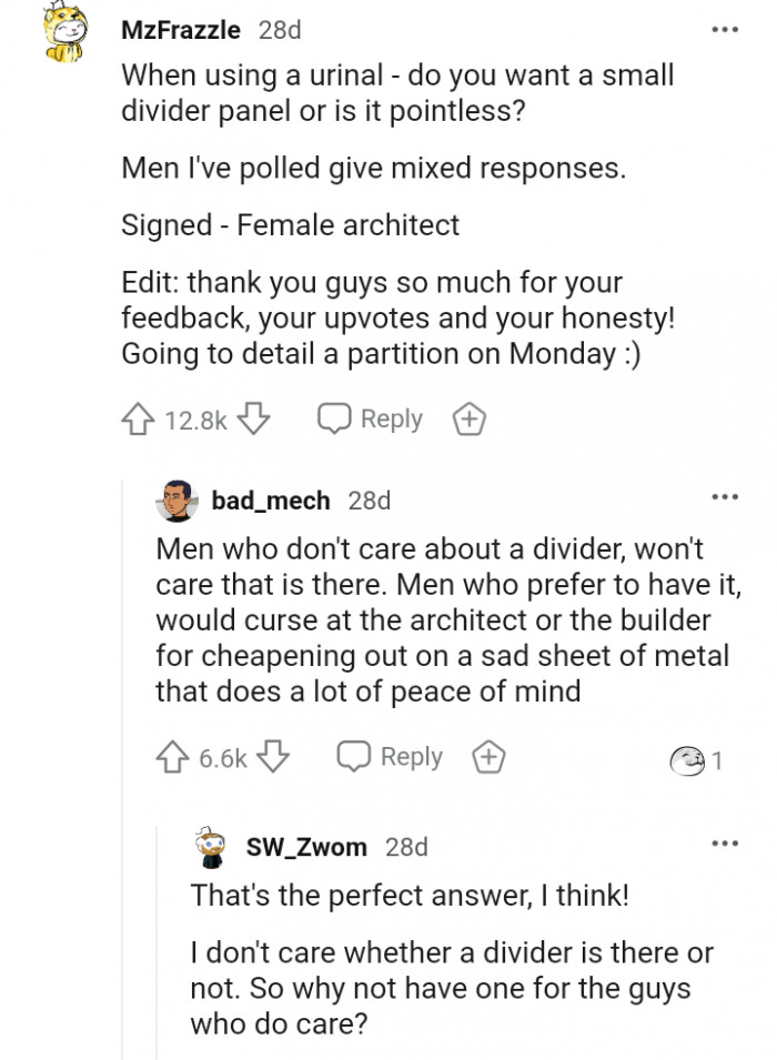 Despite these differences, it doesn't change the desire for men and women to understand one another. One Redditor, for example, isn't about to allow the bridges to grow any wider.