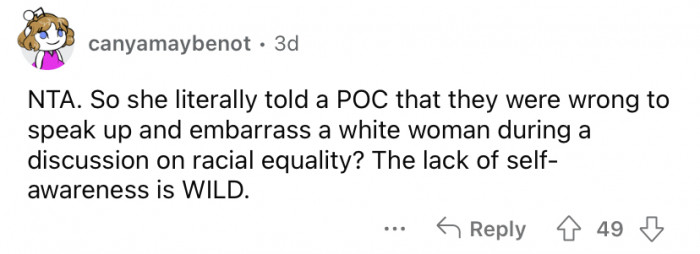 Reddit/bungybluesThe student began to rant about how "people of color" shouldn't have to do that and how it's sad that they "feel ashamed" of their ethnic names.