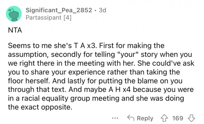 Making assumptions is a dangerous pastime, especially when they pertain to a person's race. Recently, Reddit user u/bungyblues posted a story in the AITA (Am I The A**hole?) subreddit on that exact topic.