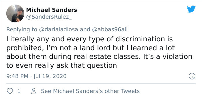 abbas96aliThe post contains two screenshots of the exchange this man had with the landlord and the caption: "My heart sinks when landlords ask this question because I already know I’m not getting the place then."