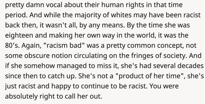 Of course, she's going to downplay this and call OP an "angry black woman."