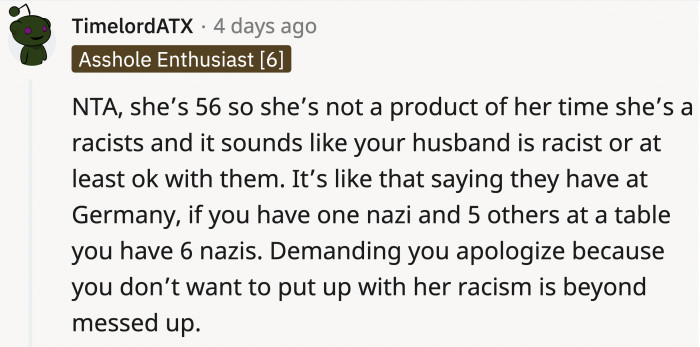 A person commented that OP's husband is not really racist; he is simply unaware.