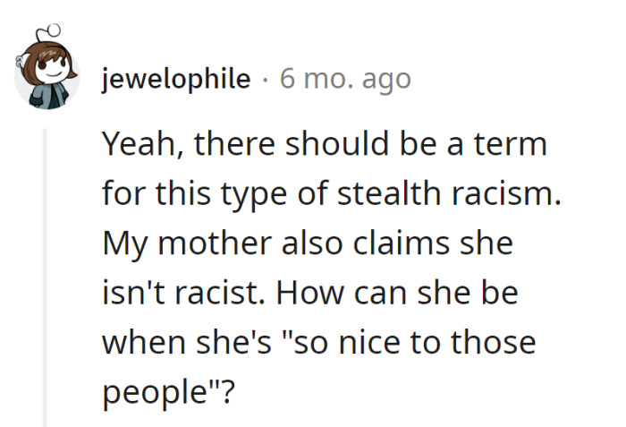 In this Reddit post, OP shares a difficult family situation that, unfortunately, many can relate to: dealing with a racist parent. Racism, the belief that one race is superior to others, often manifests in subtle ways, such as making fun of accents or stereotyping certain groups.