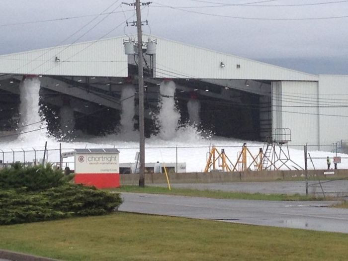 "Ever Wondered What Happens If There Is A Fire In An Airplane Hangar? Suppression System Activated In Yyz North End"