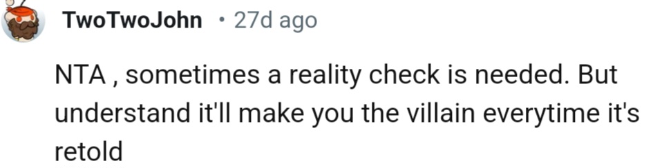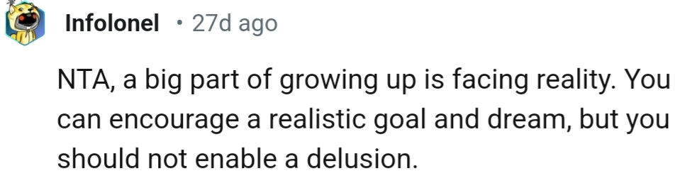"NTA, sometimes a reality check is needed"