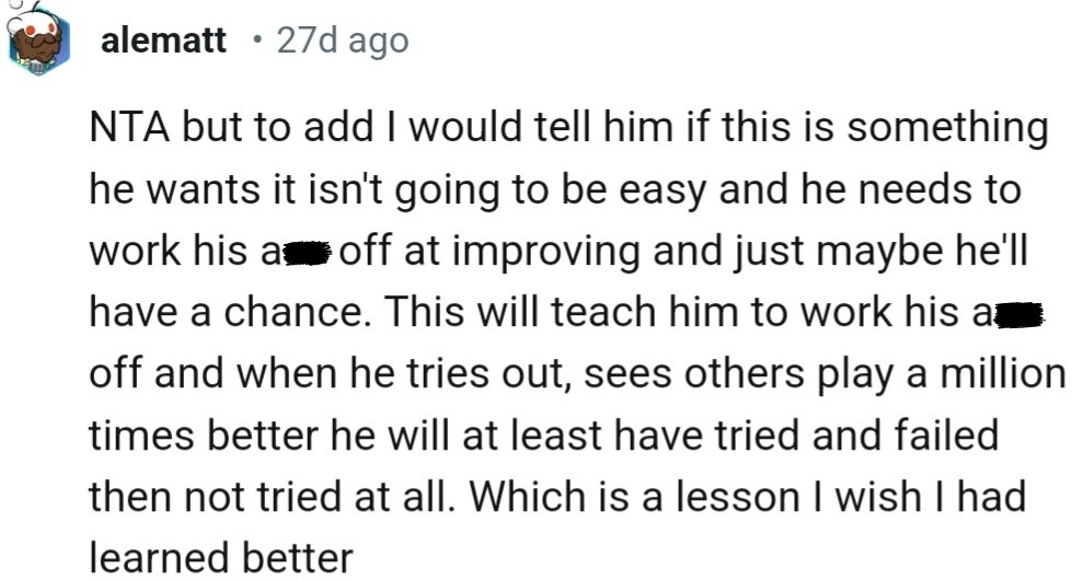 Redditors commended OP for being a much-needed voice of reason and a positive male influence on his girlfriend’s nephew. It's better he hears it now than face harsher truths later.