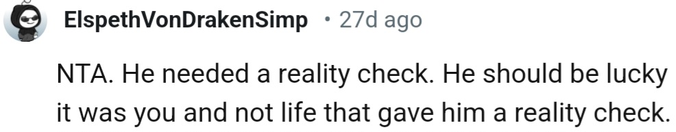 "He should be lucky it was you and not life that gave him a reality check"
