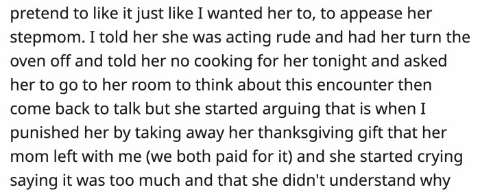Dad Took Away Daughter's Present and Dinner She Cooked for Herself on Thanksgiving While Siding with Stepmom in a Fight