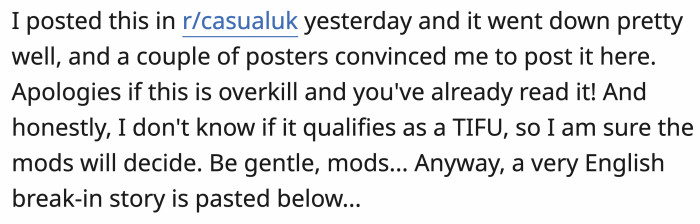 OP immediately used their bed to jam the door, then consoled his visibly shocked girlfriend. OP thought the ordeal was over, but unfortunately, it wasn't.