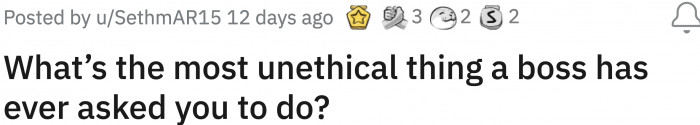 A post in AskReddit rallied stories about bosses who forced their employees to engage in unethical actions. The comments ranged from ‘oh, that’s pretty bad’ to ‘is that even legal?’