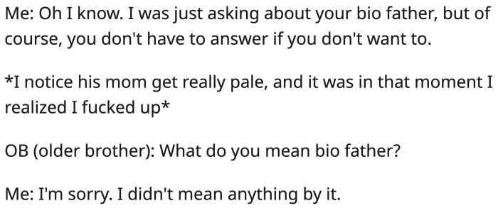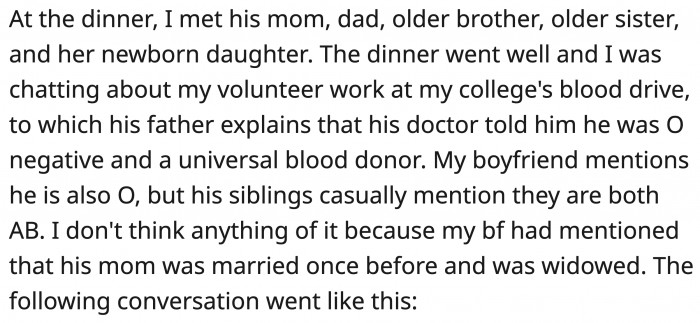OP wasn't really surprised that the siblings had different blood types because of this. To say that the following conversation was explosive would be putting it mildly.