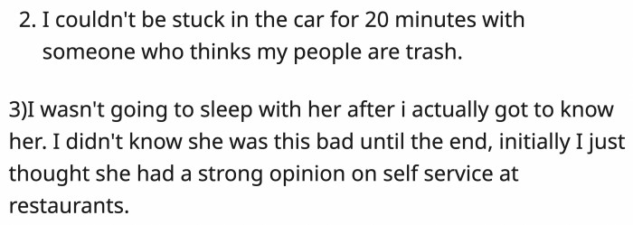 OP saw red flags, but he ignored them because he was hoping for "adult time" after the date.