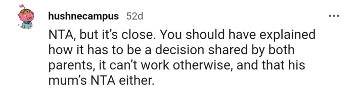 "Depends on how you said it. Pets are a dual decision, not a 'your mother' decision"