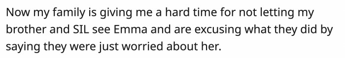 This pushed the already strained relationship into further downfall when they disregarded OP's decisions and gave her a hard time for it.