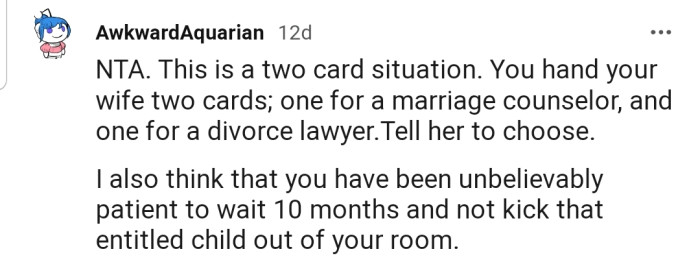 Now OP's wife has a big decision to make: Either her son or their marriage
