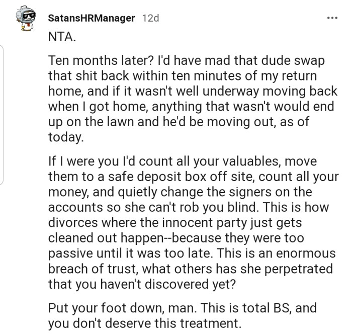Reddit.comWeeks later, she went ahead with the swap while OP was at work, and without his consent