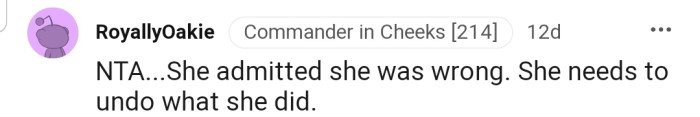 The commenters all agree that OP is NTA. However, they can’t believe he didn’t rectify the situation immediately.