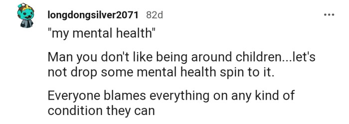 "Man, you don't like being around children...let's not drop some mental health spin on it."