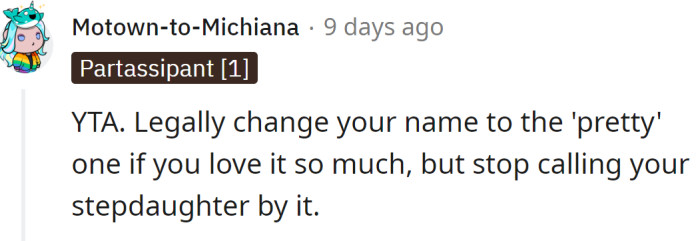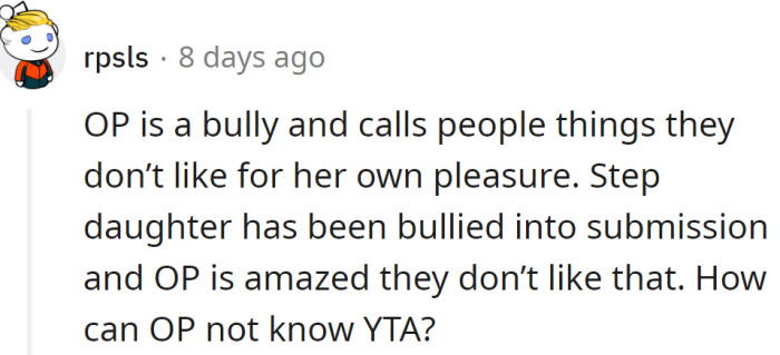 redditWhen the OP found out her actual name, she started calling her by that, even though the stepdaughter didn't like it