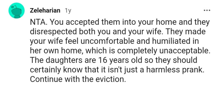 Unable to tolerate such callousness, OP made the difficult decision to evict their sister and her daughters from their home. The emotional fallout was severe, as pleas for forgiveness and second chances fell on deaf ears.