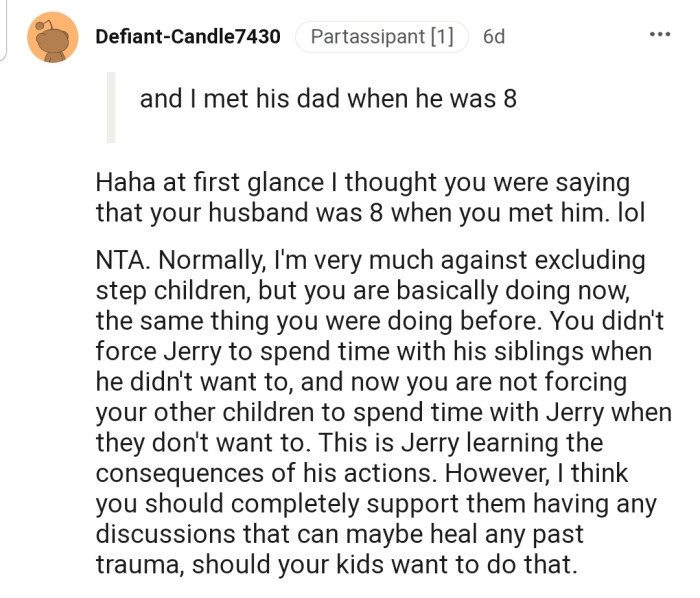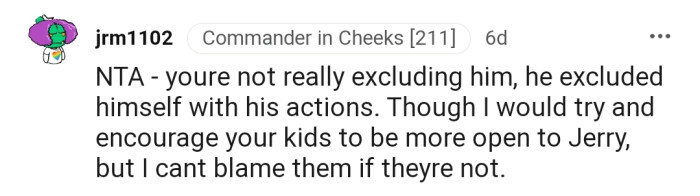 Recently, Jerry has been trying to find his way back into the family, but his step-siblings want nothing to do with him again. Interestingly, OP is the one feeling the heat, as she has been accused of excluding Jerry from mingling with the other kids.