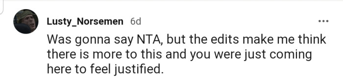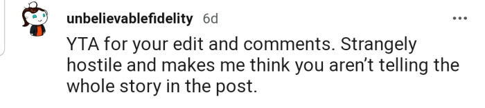 "YTA for your edit and comments."