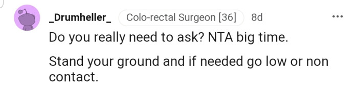 "NTA. She must be getting a little desperate pulling the family card, but she needs to be an adult."