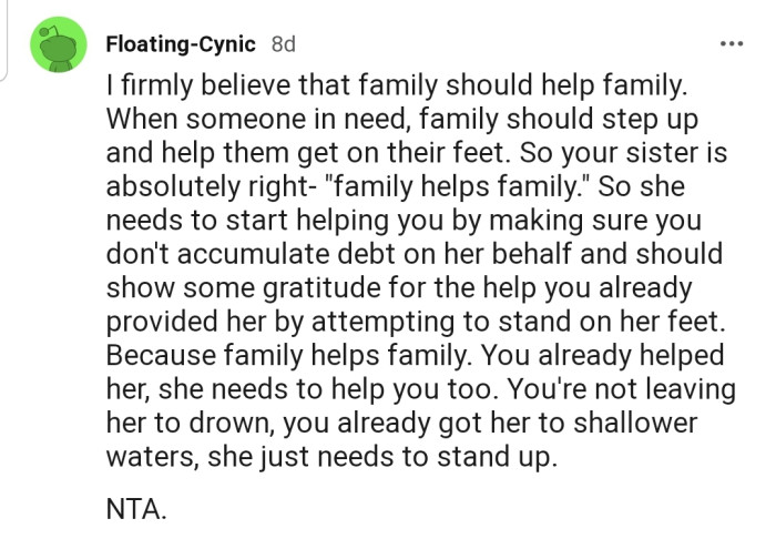 Do you think OP should keep helping her sister out? Let us know in the comments section!