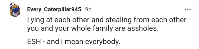 "You and your whole family are assholes. And I mean everybody."