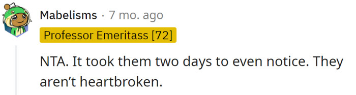 Despite the heartbreak, the OP found comfort in the fact that her beloved grandmother agreed to take care of Pebbles. But sorrow struck again three months ago when the OP's grandmother passed away.